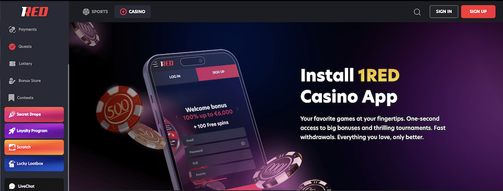 The inclusion of exclusive 1RED Originals demonstrates a commitment to unique content, while the gamification layers, such as Lootboxes, Quests, and the Secret Drops, ensure that the experience remains fresh and engaging long after the welcome bonus is used. The seamless integration of a robust sportsbook further elevates 1RED, making it a “one-stop shop” for diverse gambling tastes.